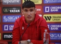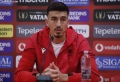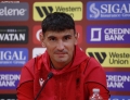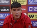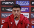 Lojtari e kombetares shqiptare te futbollit, Julian Shehu gjate nje konference per shtyp para ndeshjes me kombetaren e Serbise, ne kuader te kualifikuesve per boterorin 2026.