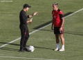 Trajneri Sylvinho and Lojtari e kombetares shqiptare te futbollit, Myrto Uzuni gjate nje seance stervitore ne ambientet e stadiumit Arena Kombetare ne Tirane, para ndeshjes me kombetaren e Serbise, ne kuader te kualifikuesve per boterorin 2026.