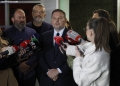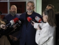 Deputeti Arbjan Mazniku duke folur per gazetaret pas nje takimi ne ambientet e selise se PS. Gjate saj, u diskutua rreth zgjedhjeve te pjesshme ne bashkite Mat, Berat, Tepelene, Vlore dhe Cerriku. Pas takimit, u konfirmuan kandidatet per bashkite.
