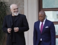 KRYETARI I BASHKISE NEW YORK NE TIRANE - Kryeministri Edi Rama dhe kryetari i bashkise New York, Eric Adams duke dale nga ambientet e kryeministrise ne Tirane. Adams ka arritur ne Tirane per nje vizite 4 ditore.