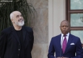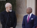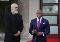 Kryeministri Edi Rama dhe kryetari i bashkise New York, Eric Adams duke dale nga ambientet e kryeministrise ne Tirane. Adams ka arritur ne Tirane per nje vizite 4 ditore.