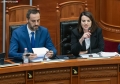 Ministri i Drejtesise, Besfort Lamallari dhe Ministrja e puneve te brendshme, Albana Kociu gjate momenti tensioni gjate nje seance parlamentare. Gjate seances ka pasur debate mbi perfshirjen e emrit te Enver Hoxhes ne nje material te parlamentit, mbi personat e lindur ne tetor.