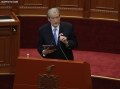 Kryetari i partise demokratike, Sali Berisha duke folur gjate nje seance parlamentare. Gjate seances, u miratuan tre projektrezoluta, nje projektligj dhe dy projektvendime