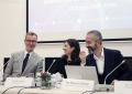 KONFERENCE PER ZGJEDHJET E 9 NENTORIT - Kreu i delegacionit te BE ne Tirane ambasadori, Silvio Gonzato, Komisioneri Shteteror i Zgjedhjeve, Ilirjan Celibashi dhe Zyrtarja e Programit te International IDEA, Blerta Hoxha duke folur gjate nje konference mbi zgjedhjet e ardhshme vendore te dates 9 nentor. Gjate saj u konfirmua perdorimi i inteligjences artificiale.