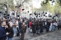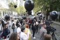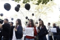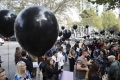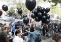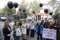 Citizens with black balloons during a protest in front of the Ministry of Health over the lack of medicines at the Oncology Department, where cancer patients are treated.