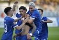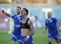 FUTBOLL TEUTA FLAMURTARI - Lojtaret e Teutes festojne shenimin e nje goli gjate ndeshjes se futbollit Teuta - Flamurtari, 3-2, e vlefshme per Kategorine Superiore, e luajtur ne stadiumin Niko Dovana ne Durres.