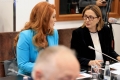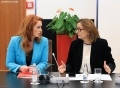 Kryetarja e Autoritetit te mediave audiovizive, Armela Krasniqi, Deputetja Dhurata Cupi gjate nje diskutimi te organizuar nga OSBE per lirine, transparencen dhe pavaresine e mediave.