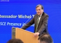 Kreu i Prezences se OSBE ne Shqiperi, Michel Tarran gjate nje diskutimi te organizuar nga OSBE per lirine, transparencen dhe pavaresine e mediave.