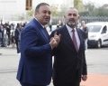 Deputetet Blendi Klosi dhe Agron Malaj duke hyre ne ambientet e parlamentit per nje seance. Seanca eshte mbajtur pasi eshte betuar deputetja e re Briseida Cakerri dhe eshte rrezuar kerkesa per te shkarkuar kryetarin e parlamentit, Niko Peleshi.
