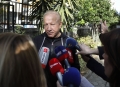 PACOLLI NE PROKURORINE E TIRANES - Biznesmeni Behgjet Pacolli duke folur per gazetaret pasi ka dale nga ambientet e Prokurorise se Tiranes. Pacolli eshte thirrur si person ne dijeni lidhur me hetimet qe po kryhen per ndertimin e Aeroportit te Vlores