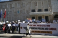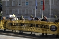 Protestues me banderola dhe pankarta gjate nje proteste ne Tirane. Ne protesten qe kane marre te rinj shqiptare dhe te huaj jane shprehur kunder kampit ne Gjader dhe trajtimit te refugjateve.