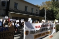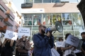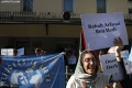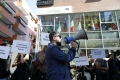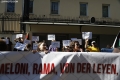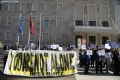 Protestues me banderola dhe pankarta gjate nje proteste para ambasades se Italise ne Tirane. Ne protesten qe kane marre te rinj shqiptare dhe te huaj jane shprehur kunder kampit ne Gjader dhe trajtimit te refugjateve.