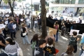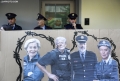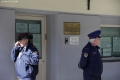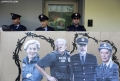 Oficere policie gjate nje proteste para ambasades se Italise ne Tirane. Ne protesten qe kane marre te rinj shqiptare dhe te huaj jane shprehur kunder kampit ne Gjader dhe trajtimit te refugjateve.