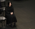 Xhoana Nano during the homage ceremony for former Prime Minister Fatos Nano, at the Palace of Congresses. The former Prime Minister and leader of the Socialist Party passed away at the age of 73, after a battle with lung disease.