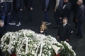 Sokol Nano and Xhoana Nano during the homage ceremony for former Prime Minister Fatos Nano, at the Palace of Congresses. The former Prime Minister and leader of the Socialist Party passed away at the age of 73, after a battle with lung disease.