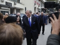 Kryetari i Partise Demokratike, Sali Berisha duke pershendetur mbeshtetesit para se te hyje ne ambientet e SPAK. Pas paraqitjes ne SPAK, Berisha ka sulmuar kreun i institucionit, Altin Dumanin.