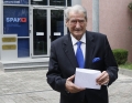 Kryetari i Partise Demokratike, Sali Berisha duke folur per gazetaret pas daljes nga ambientet e SPAK. Pas paraqitjes ne SPAK, Berisha ka sulmuar kreun i institucionit, Altin Dumanin.