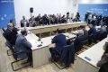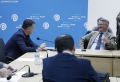 Kryetari i partise demokratike, Sali Berisha dhe deputetet Gazment Bardhi dhe Flamur Noka gjate nje takimi te grupit parlamentar te PD ne ambientet e selise se partise. Gjate saj u fol rreth aksionit opozitar dhe mbi problemet me te medha te vendit, si shpopullimi.