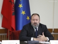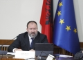 Deputetet Arbjan Mazniku, Vangjel Dule dhe Edmond Haxhinasto gjate seances se pare te komisionit te posacem per reformen administrative territoriale. Ne seance kane munguar deputetet e Partise Demokratike.