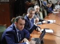 Deputetet Klevis Balliu dhe Flamur Noka gjate nje seance te komisionit parlamentar per ceshtjet e brendshme dhe mbrojtjen, ku u paraqit Drejtoresha e Sherbimit Informativ te Shtetit, Vlora Hyseni. Gjate seances u diskutua rreth projektbuxhetit te vitit 2026.