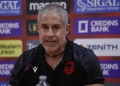 Trajneri i kombetares shqiptare te futbollit, Sylvinho gjate nje konference per shtyp para ndeshjes me kombetaren e Anglise, ne kuader te kualifikuesve per boterorin 2026.