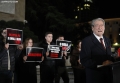 Deputeti Flamur Noka gjate nje proteste te organizuar nga partia demokratike para kryeministrise ne Tirane. Gjate saj, Berisha dhe protestuesit jane shprehur kunder ligjit te kaluar per barazine ligjore, kunder kryeministrit Edi Rama dhe ne mbrojtje te demokracise.
