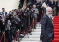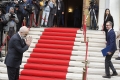 Kryeministri Edi Rama dhe Komisionerja Evropian per Fqinjesine dhe Zgjerimin, Marta Kos gjate ceremonise se pritjes ne shkallet e Pallatit te Brigadave ne Tirane, para samitit rajonal Rruga jone drejt BE. Ne samit kane marre pjese perfaqesuesit e shteteve te Ballkanit Perendimor, per te diskutuar planin e rritjes se BE per kete rajon dhe rrugetimin e shteteve drejt BE.