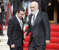 Kryeministri Edi Rama gjate ceremonise se pritjes ne shkallet e Pallatit te Brigadave ne Tirane, para samitit rajonal Rruga jone drejt BE. Ne samit kane marre pjese perfaqesuesit e shteteve te Ballkanit Perendimor, per te diskutuar planin e rritjes se BE per kete rajon dhe rrugetimin e shteteve drejt BE.