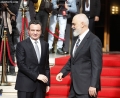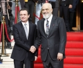 Kryeministri Edi Rama dhe Kreu i delegacionit te BE ne Tirane ambasadori, Silvio Gonzato gjate ceremonise se pritjes ne shkallet e Pallatit te Brigadave ne Tirane, para samitit rajonal Rruga jone drejt BE. Ne samit kane marre pjese perfaqesuesit e shteteve te Ballkanit Perendimor, per te diskutuar planin e rritjes se BE per kete rajon dhe rrugetimin e shteteve drejt BE.