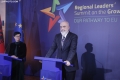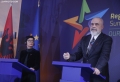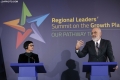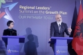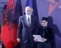 Kryeministri Edi Rama dhe Komisionerja Evropian per Fqinjesine dhe Zgjerimin, Marta Kos duke folur gjate nje konference te perbashket pas samitit rajonal Rruga jone drejt BE. Ne samit kane marre pjese perfaqesuesit e shteteve te Ballkanit Perendimor, per te diskutuar planin e rritjes se BE per kete rajon dhe rrugetimin e shteteve drejt BE.