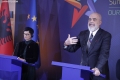KONFERENCE E KOS DHE RAMES - Kryeministri Edi Rama dhe Komisionerja Evropian per Fqinjesine dhe Zgjerimin, Marta Kos duke folur gjate nje konference te perbashket pas samitit rajonal Rruga jone drejt BE. Ne samit kane marre pjese perfaqesuesit e shteteve te Ballkanit Perendimor, per te diskutuar planin e rritjes se BE per kete rajon dhe rrugetimin e shteteve drejt BE.