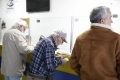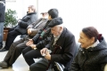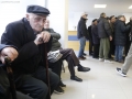 PENSIONISTET MARRIN SHPERBLIMIN - Nje pensionist duke marre shperblimin ndersa te tjere presin ne radhe ne nje pike te Postes Shqiptare ne Tirane gjate paradites te te martes, 2 dhjetor. Keshilli i ministrave vendosi te jape shperblim financiar per pensionistet per festat e vitit te ri.