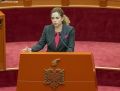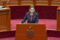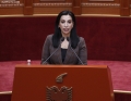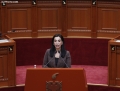 Deputetja Olta Xhacka duke folur gjate nje seance parlamentare. Gjate saj jane disktuar problematikat e zgjedhesve.