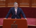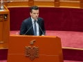 Ministri i Turizmit, Kultures dhe Sportit, Blendi Gonxhe duke folur gjate nje seance parlamentare. Gjate saj jane disktuar problematikat e zgjedhesve.