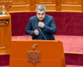 Deputeti Klevis Balliu duke folur gjate nje seance parlamentare. Gjate saj jane disktuar problematikat e zgjedhesve.