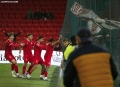 Lojtaret e Partizani festojne shenimin e nje goli gjate ndeshjes se futbollit derbi Partizani - Tirana, 2-0, e vlefshme per Kategorine Superiore, e luajtur ne stadiumin Air Albania ne Tirane.