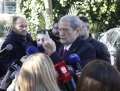 BERISHA NE SPAK - Kryetari i partise demokratike, Sali Berisha duke folur per gazetaret pasi ka dale nga ambientet e SPAK. Berisha eshte paraqitur ne SPAK ne kuader te zbatimit te mases se sigurise Detyrim Paraqitjeje per ceshtjen e privatizmit te ish klubit sportiv Partizani
