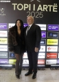 The President of the Albanian Football Federation, Armand Duka, and his wife outside the Opera and Ballet Theater for the 2025 Golden Ball ceremony, where the best footballers of the year will be honored.