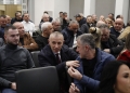 Ilir Alimehmeti gjate nje mbledhjeje te kryesise se PD. Mbledhja e mbajt nje dite pas tensioneve ne parlament. Gjate mbledhjes, Kryetari Sali Berisha ka deklaruar se protestat do te vazhdojne.