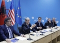 Kryetari i PD, Sali Berisha dhe deputetet Edi Paloka, Flamur Noka, Gazment Bardhi dhe Agron Gjekmarkaj gjate nje mbledhjeje te kryesise se PD. Mbledhja e mbajt nje dite pas tensioneve ne parlament. Gjate mbledhjes, Kryetari Sali Berisha ka deklaruar se protestat do te vazhdojne.
