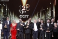 Talat Xhaferri, Kryetari i Dhomes se Tregtise dhe Industrise Tirane, Nikolin Jaka dhe Presidenti Bajram Begaj gjate nje ceremonie ku u ndane cmimmet per bizneset per 2025 ne nje ceremoni te organizuar nga Dhoma e Tregtise dhe Industrise. Cmimet u ndane ne disa kategori, duke perfshire ekselencen në sipermarrje, rritjen e qendrueshme dhe ndikimin ne komunitet.