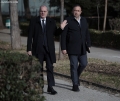 MPs Klevis Balliu and Gazment Bardhi outside the parliament premises. Opposition MPs had warned of tensions while demanding the resignation of Deputy Prime Minister Belinda Balluku