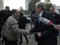Kryetari i partise demokratike, Sali Berisha jashte ambienteve te parlamentit pas nje seance parlamentare. Gjate seances, ka pasur tensione dhe deputetet e opozites kane bllokuar seancen.
