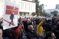 Qytetare gjate nje proteste para kryeministrise ne Tirane. Gjate saj, protestuesit kane kerkuar doreheqjen e kryeministrit Edi Rama.