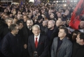 Kryetari i PD, Sali Berisha dhe mbeshtetes gjate nje proteste para kryeministrise. Gjate protestes, anetaret dhe mbeshtetesit e PD kane kerkuar doreheqjen e kryeministrit Edi Rama dhe krijimin e nje qeverie teknike.