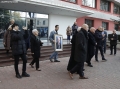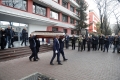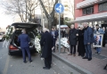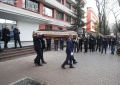 Punetore te shtepise funerale nxjerrin arkivolin pas ceremonise se homazheve per gazetarin sportiv, Ismet Belloven, e organzuar ne ambientet e RTSH. Bellova nderroi jete ne moshen 91 vjecare