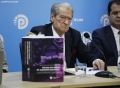 Kryetari i PD, Sali Berisha duke folur gjate nje konference per shtyp ne ambientet e selise se PD. Gjate konference eshte prezantuar nje botim i dyte permbledhes me akuzat e PD per vjedhjen e zgjedhjeve 2025