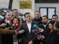Deputetet Flamur Noka dhe Klevis Balliu dhe avokati Marash Logu duke folur per gazetaret para ambienteve te Gjykates se Tiranes, pas nje seance ku u vendos mbi protestuesit e arrestuar me 22 dhjetor. Gjykata ka vendosur te liroje protestuesit dhe mos vendose masa sigurie. Pas seanes, Noka ka deklaruar pershkallezim te aksionit opozitar.