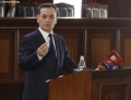 SOKOL SADUSHI NE KONFERENCE - Kreu i Gjykates se Larte, Sokol Sadushi duke folur gjate nje konference per shtyp. Gjate konferences, Sadushi ngriti si shqetesim numrin e ulet te gjyqtareve dhe prokuroreve ne sistem, si dhe reduktimin e pranimeve te magjistrateve te rinj, duke fajesuar per mungese vizioni qeverine, Keshillin e Larte Gjyqesor dhe Keshillin e Larte te Prokurorise.