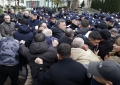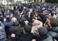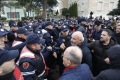 Kryetari i partise Shqiperia Behet, Adriatik Lapaj, protestues dhe forca policore ne nje moment perplasjeje gjate nje proteste para kryeministrise ne Tirane. Gjate saj, protestuesit kane kerkuar doreheqjen e kryeministrit Edi Rama.